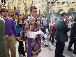 El es acólito, que llevando una vara larga o pértiga de plata, va al cuidado de los acólitos que llevan los ciriales. Él les ordena alzar o bajar los mismos; en las Funciones de Culto, se coloca entre éstos, y con un simple golpe de la pértiga en el suelo, les indica cómo sostener a pulso , bajar o descansar esos mismos ciriales, así como iniciar la marcha o parar, cuando van en las Procesiones. La túnica que viste se llama ROPÓN DEL PERTIGUERO